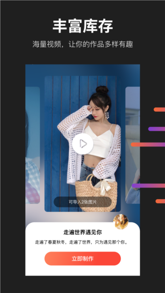 2、快速生成:拥有强大的图像处理技术与算法能力,能够迅速将图片转换成视频并自动分享到各大社交平台;