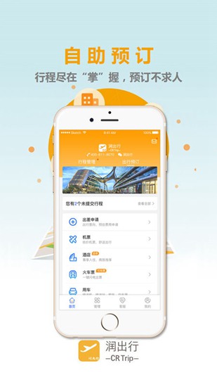润出行是专为企业差旅服务的一款办公app,能够帮助企业管理员工、审批流程和报销订单等操作。软件支持在线提交申请单信息或者直接联系客户进行出差服务办理功能!