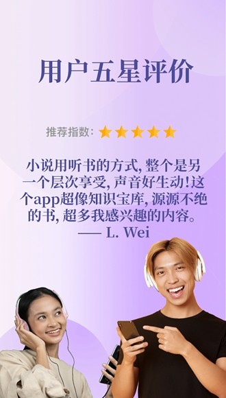 另外软件还有着强大的搜索功能帮助用户快速寻找到自己想要观看的内容来享受更加便捷的服务体验!在软件中还会根据用户的兴趣爱好推荐相关类型的热门新歌与网络小说等等超多精彩作品让你每天都能发现新的乐趣哦~喜欢听书的用户快来下载使用吧,在这里感受更加优质的听书方式哟!软件特色
