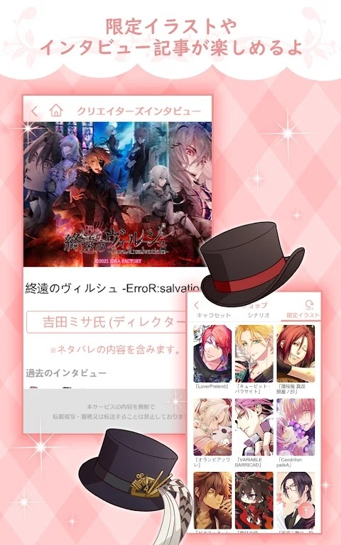 Totomate是一个专为喜欢玩乙女游戏的用户打造的游戏盒子,在这里你可以找到各种不同的角色和风格,包括可爱的小女孩、魔术师等等。玩家可以自由选择你喜爱的人物来进行游戏体验。游戏中有着许多精美的插图以及各种动画效果供玩家们使用,这些插图不仅能让您轻松地创建个性化的角色形象,还能让你与来自世界各地的朋友分享。同时我们还提供了丰富的游戏内容资源库可满足不同玩家的需求,无论你是新手还是有经验的玩家,都能在OTOmate上畅游于这个充满无限可能的世界里。