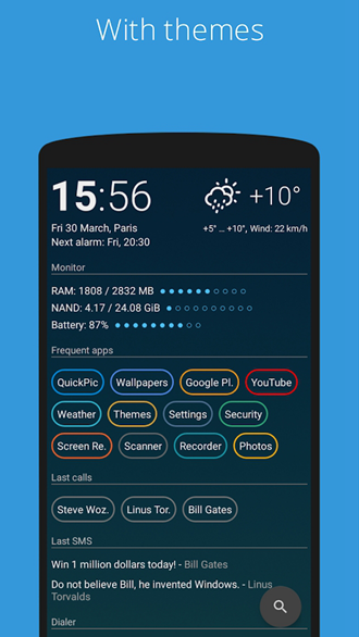 launcher解锁高级版是一个非常好用的桌面启动器 launcher解锁高级版是一个功能强大的手机桌面美化软件,使用起来非常的简单方便,支持各种不同的安卓系统。可以让大家在桌面上自由切换不同风格的图标和主题壁纸来装饰桌面的背景,让你拥有一个更加个性化的手机桌面!提供了各种实用的小部件供用户选择,例如天气、日历等;用户可以在桌面上添加天气信息以及提醒事项等等内容哦。
