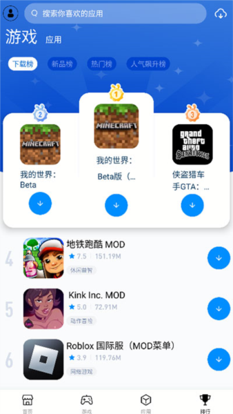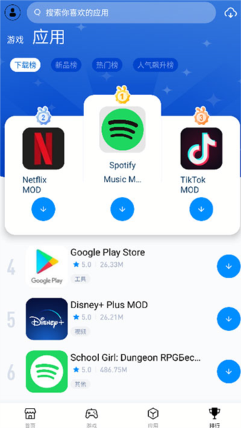 3、排行榜单:实时推送热门应用排行信息,帮助用户及时发现最受欢迎的应用或游戏。