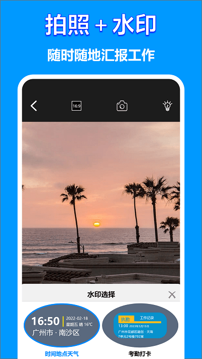 工地相机打卡水印版app是专为工程考勤打造的手机软件,使用其能够便捷进行记录工作信息。支持照片加水印操作功能,快速快捷添加图片的水印内容等多种效果设置服务给到用户!需要的用户赶紧看看吧!