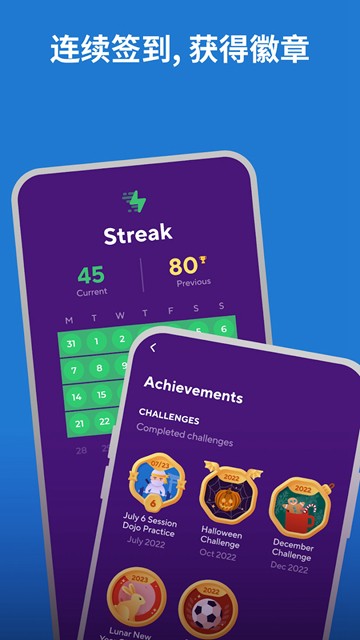 *通过精心挑选的场景游戏化课程,确保学习者的注意力能够集中精力于日常对话中。因此我们特别设计了一个令人印象深刻的游戏化的课程体系,使每一位用户都有机会获得奖励。