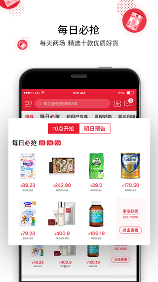 涵盖从产地到家庭的所有母婴商品资源,如营养保健品、洗护清洁用品、美容美妆、玩具童装、儿童玩具等多类型的商品种类。