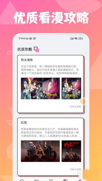 追漫大师兄app是一个专为喜欢二次元漫画的用户打造的动漫阅读神器,海量资源免费观看。软件内涵盖了多种风格和类型的动漫内容,如日式、欧风以及韩系等,用户可以根据自己的喜好来选择喜欢的作品进行观看。该应用还提供了高清画质下载功能,即使在网络不稳定的情况下也能轻松畅享动漫世界。