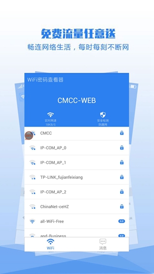 通过使用Wifi密码访问工具对当前的网络状态进行实时监控处理。它可以在后台运行,因此无需担心流量消耗。