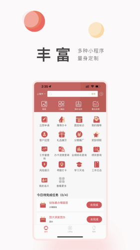 客户详情页面新增我的消息模块,包括“待审批”、“已读未读”三个栏目中展示出全部的功能入口。