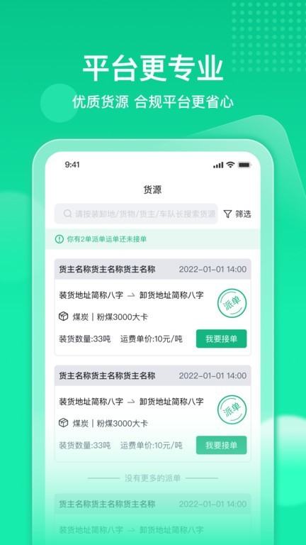 根据您的位置自动分配附近的货物运输资源,确保每一步都是高效且安全的运力选择。