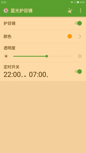 蓝光护眼镜是款专为安卓用户打造的护视软件,在这款软件中用户可以根据自己使用手机的屏幕颜色来选择合适的护眼模式进行操作哦,而且蓝光护眼镜还能调节亮度哦,喜欢的朋友快来下载试一试吧!