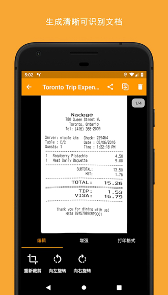 1、自动切边去除杂乱背景,生成高清PDF文件。