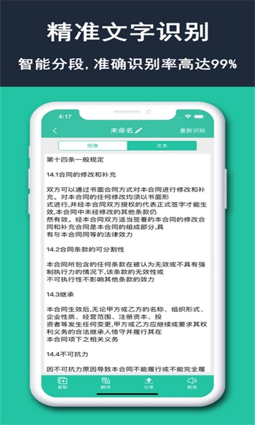 手机扫描君app是一款可以帮助用户快速进行文字识别和图片转文字的软件,在使用时只需要拍照就能精准提取文本信息并生成对应的内容来实现转换成电子文档。同时还能通过它对文件、身份证照片中的文字一键翻译为多国语言!