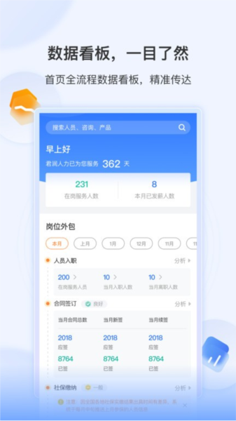 智慧君润官方版是为客户打造的一款智能服务软件,它能够帮助你轻松管理自己旗下的所有员工和订单信息。通过这款应用程序您可以方便地处理各项工作任务、进行财务报表查询等操作,大大提高了工作的效率和准确性。