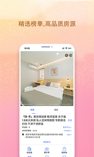 1.【民宿客栈】覆盖全国主要城市的1000+民宿房源:海岛度假区、清北青年公寓屋等,无论您是在城市间露营游玩或个人出差,我们都有一套独特的民宿客栈。