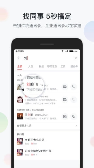 组织架构一目了然,随时随地找人;