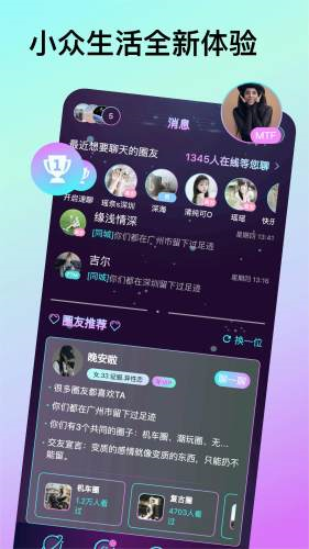 微乐园是小众圈子社交软件,为小伙伴们提供最热门的话题内容。这里有超多的兴趣小组供你加入,可以随时与志同道合的朋友互动交流,让你轻松结交更多有趣的朋友,感兴趣就下载使用吧!