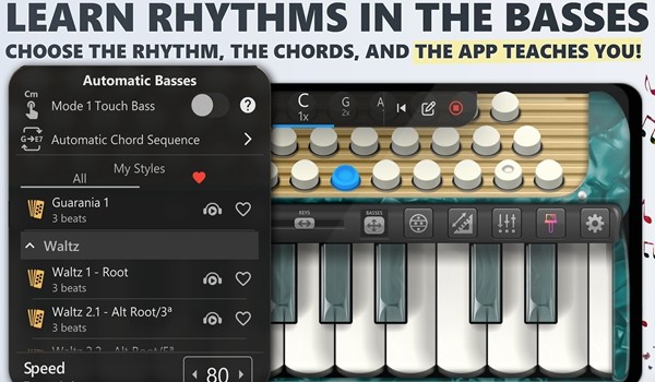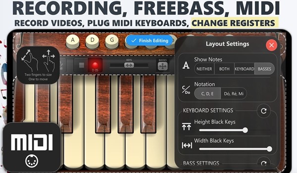 练习手指、重板以及键盘上的真实模拟按下或滑动。您还可以将您的设备作为一个电子邮件附件(用于任何设备的Dropbox)。您可以使用这个虚拟工具来检查如何在应用程序上弹出的歌曲并进行自动弹唱或重置。