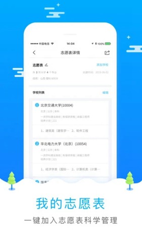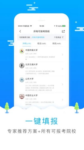 高考志愿填报是为高三考生打造的一个智能综合服务平台。该应用汇集了全国各省市的高校资源数据,通过大数据分析功能对历年高校招生情况进行了全面解析,提供详尽的信息查询结果,助力考生做出更明智的选择。