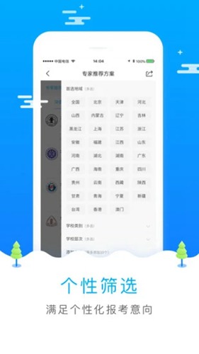 定制建议:根据你的兴趣爱好(比如性格、学历和职业等),为你量身定制最适合的志愿填报策略,避免因找不到理想的大学而导致失望的困扰。