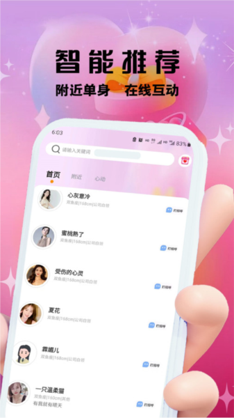 【同城交友】:智能匹配算法,为您筛选附近的单身异性,拒绝照骗。