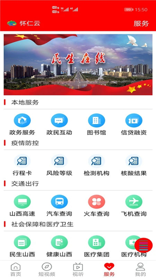 怀仁云是专为本地人打造的生活服务平台,软件提供本地新闻、政务办理等多种功能。通过app可以了解本地最新资讯动态和热点事件等等信息内容!还有便民的服务哦,有需要的朋友快来下载吧