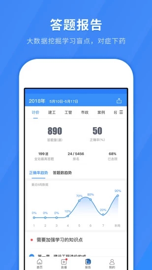 自动评估并预测通过率,使您能够了解自己的薄弱环节,查漏补缺。