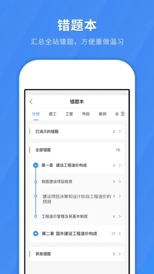 海量真题:收录近几年注册建造师考试真题,还有章节练习、模拟考试;