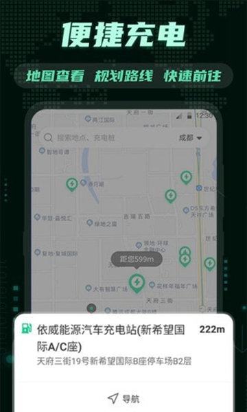 通过目的地名称或地图搜寻,迅速定位到充电终端上。