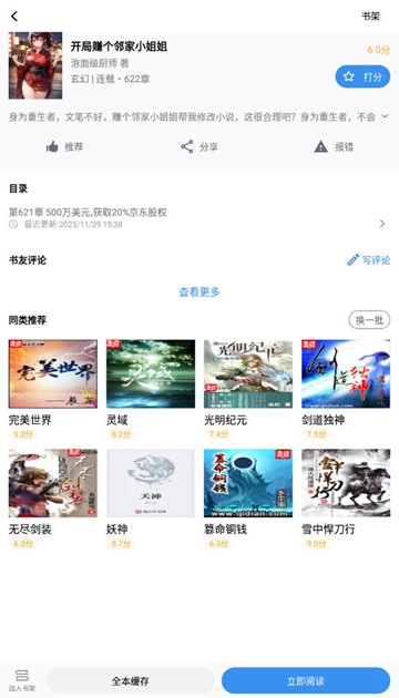 2、秒速追更:实时跨站搜索全网热门小说,与作者更新云同步。更有贴心的实时提醒功能,一键打开全新章节的阅读,让追更迷不在煎熬等待,不会错过任何精彩章节目录。