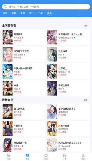 3、智能搜索引擎:拥有强大强大的搜索引擎,帮助你快速定位喜欢的小说或漫画进行观看,