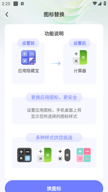应用隐私保护app是一款非常实用的手机隐藏软件,能够完美地对手机中所有的应用进行隐藏操作、加密存储等服务管理;通过该款软件你可以快速将自己的应用程序伪装成计算器图标样式,同时还可以设置密码或指纹识别来防止他人打开你的账号信息。