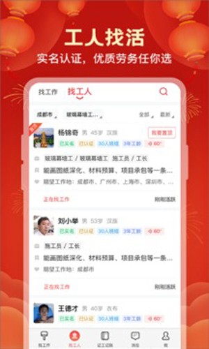 吉工家APP是一个以工人找活、招工需求发布以及求职招聘信息的应用软件,包含大量优质的工作岗位供您选择;同时还提供了工资查询功能:用户可以通过它快速查找附近工作或人才简历并进行在线报名参加培训考试等等操作。