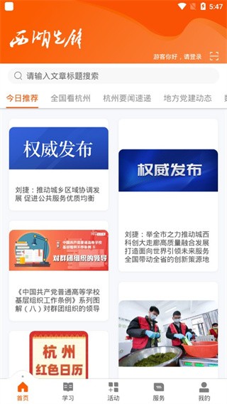 西湖先锋app是专门为党员打造的一款党建教育学习平台,这里有大量的优质党课课程和各种新闻资讯信息等你来获取!感兴趣的快来下载西海之家吧!