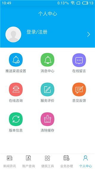 1、下载安装昆明住房公积金客户端后打开进入主页面点击“我的”按钮选择登录账号或者注册新账户(仅限昆明住房公积金认证客户)手机号密码登陆。