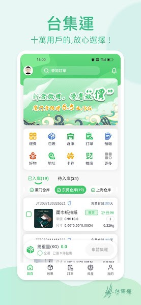 “台集运”APP是国内首个以“网络+大数据+人工智能”为核心的新型物流平台。依托于互联网+,通过移动互联网与线下实体门店相结合,整合全国各区域物流资源,实现全国范围内物流业务一体化、物流行业信息化、信息化管理等,为货主、物流企业、企业和车主提供优质的服务。目前“台集运”APP已覆盖全省14个省市县区和31多个自治区,拥有百万级的海量客户资源,拥有近千万的物流从业人员,遍布全国各地及各个城市。
