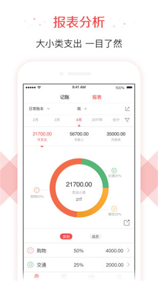 根据自己的喜好自由设定各类场景下的花费比例,满足个性化的记账需求;