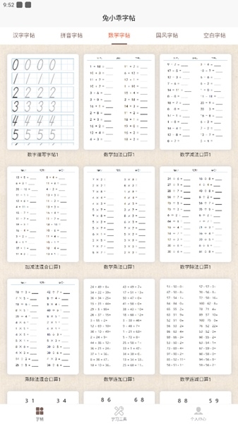 提供多种字体选项:楷书繁体、行文英文、隶书繁体、草稿纸以及更多类型字帖应有尽有,满足不同用户的审美需求;