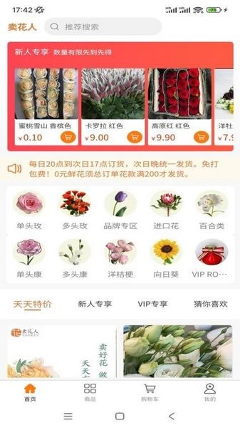 卖花人商城APP根据用户的喜好为您智能匹配符合口味的鲜花品类和服务商;