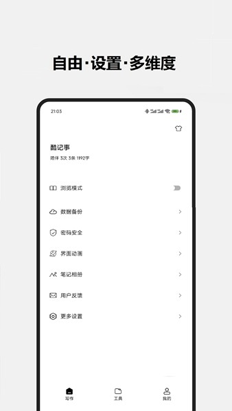 除了基本的排版布局外,酷记事还提供了一系列有趣的小功能,如语音转文字以及图片识别输入法等,满足你日常生活中的大部分需求。