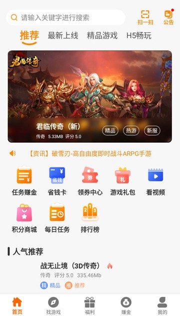 12、智能搜索:具备强大的搜索功能,帮助用户迅速找到想玩的游戏类别。