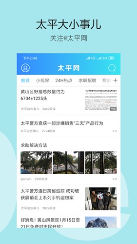 太平网是黄山用户所展现的本地服务app,为黄山市本地的用户打造的一个综合性的生活资讯阅读软件,在这里能够找到各种各样的生活信息和内容进行了解。还提供当地的新闻、美食以及旅游等多种板块资源供您使用!