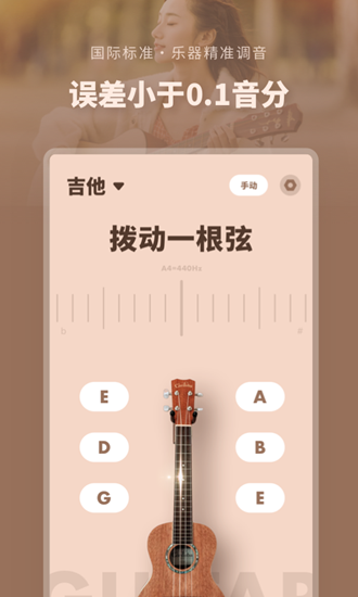 吉他调音器专业版是一个专业的手机吉他的调试软件,吉它的调音器使用起来非常的方便便捷,可以根据你的需求来进行选择。这款软件能够帮助用户快速精准地识别吉器的音准,让你轻松享受吉度的音乐乐趣。