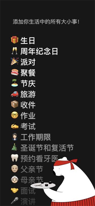 每个纪念日都可以创建新的纪念日,并且提供不同的颜色标注,一目了然。
