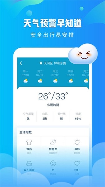 2、准确定位:基于中国气象网的权威数据源,授权了多达27种天气预警方案,从根本上解决了传统老旧天气预报不准确的问题。