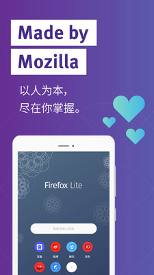 -内建的FirefoxLite是唯一一款能够使您可以更快地上网而不必担心跟进它们的浏览器。