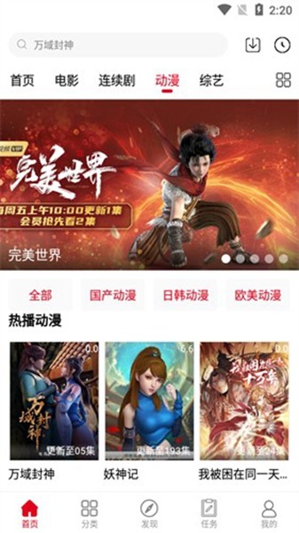2、进入应用后,你可以轻松浏览到各类热门和最新的电影、动漫、综艺节目以及其他分类的内容了;