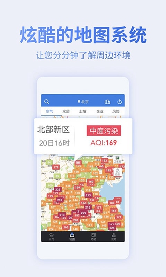 全国各个县级市级的环保局域经济体系,空气质量指数一览无余。