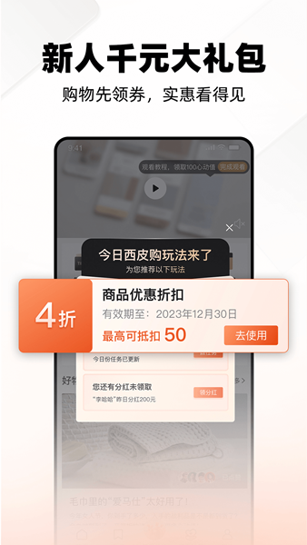西皮购在这里买到各种类型的商品,无论是生活用品、日用百货还是食品饮料这里都应有尽有,每天都有优惠活动可以参与。平台上所有的商品都是经过严格质检过的,你可以放心购买了。还有一些限时秒杀专区为你推荐,让你购物更加便宜。同时你还能领取优惠券来进行抵扣,欢迎有需要的朋友下载使用!