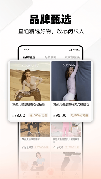 5、精选高性价比商品汇聚其中,覆盖服装服饰,母婴用品,美食等多个方面品类。