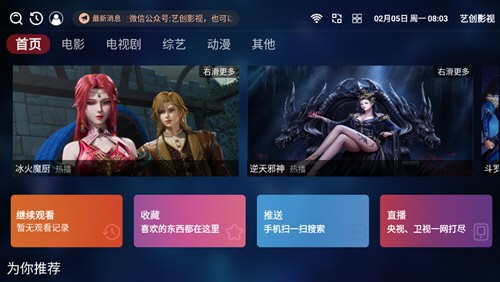 艺创影视一款超级好用的主要为用户提供免费观影的APP,通过软件可以在线进行任何剧集搜索找到对应类型的作品。超多的分类标签让筛选更精准定位更加方便快速看喜欢的剧,喜欢看剧的用户快来下载追剧吧!
